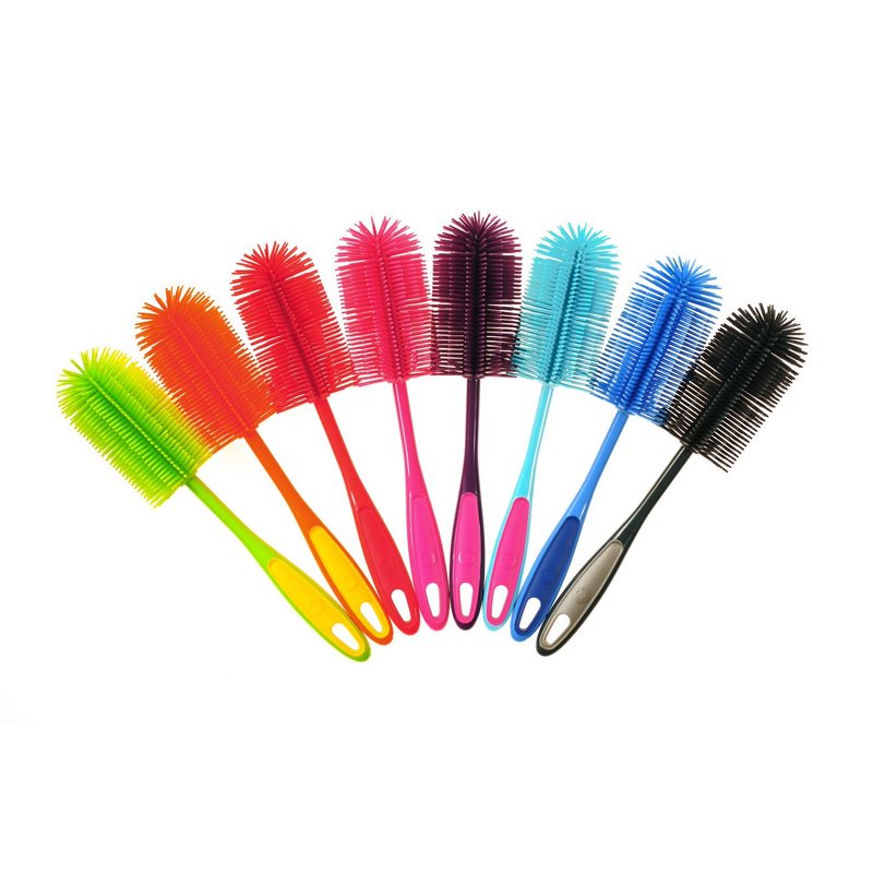 Die Spül- und Flaschenbürste Slim aus dem Hause Kochblume hat einen schmalen Kopf mit über 1000 Noppen, dieser ermöglicht es auch die letzten Ecken einer Flasche oder eines Glases zu erreichen. Durch den Einsatz von Silikon ist die Bürste zudem schonend zu allen empfindlichen Oberflächen.